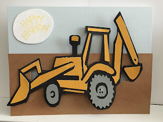 My Grandson's birthday is next weekend and his party is a construction theme. I had pieced the backhoe together last week and today made it a slider card. So much easier than I thought (the slider).