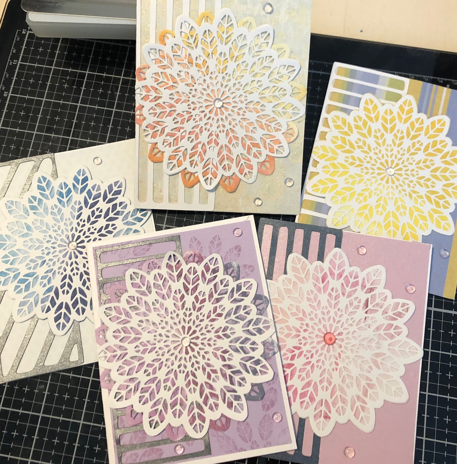 The first set of cards used by new favorite stamp and die set from Altenew - Leaf Medallion. I saw someone use this set on a layout and I can't wait to play with that idea!